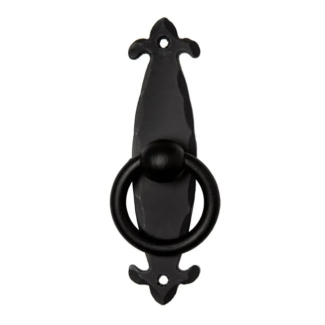 Wrought Iron Ring Pull with Fleur De Lis Back Plate