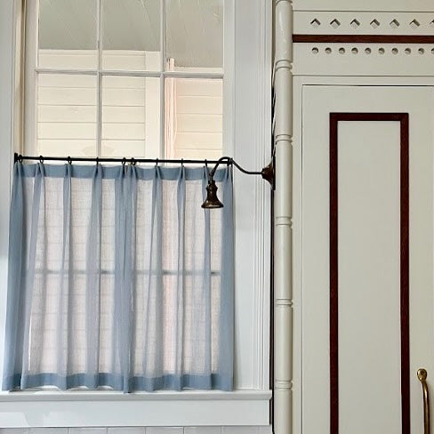 Estas barras de cortina son típicas de las barras delgadas que se encuentran en las ventanas de los cafés y se pueden montar sobre la ventana o en la mitad de la misma para ofrecer algo de privacidad y una vista del exterior.