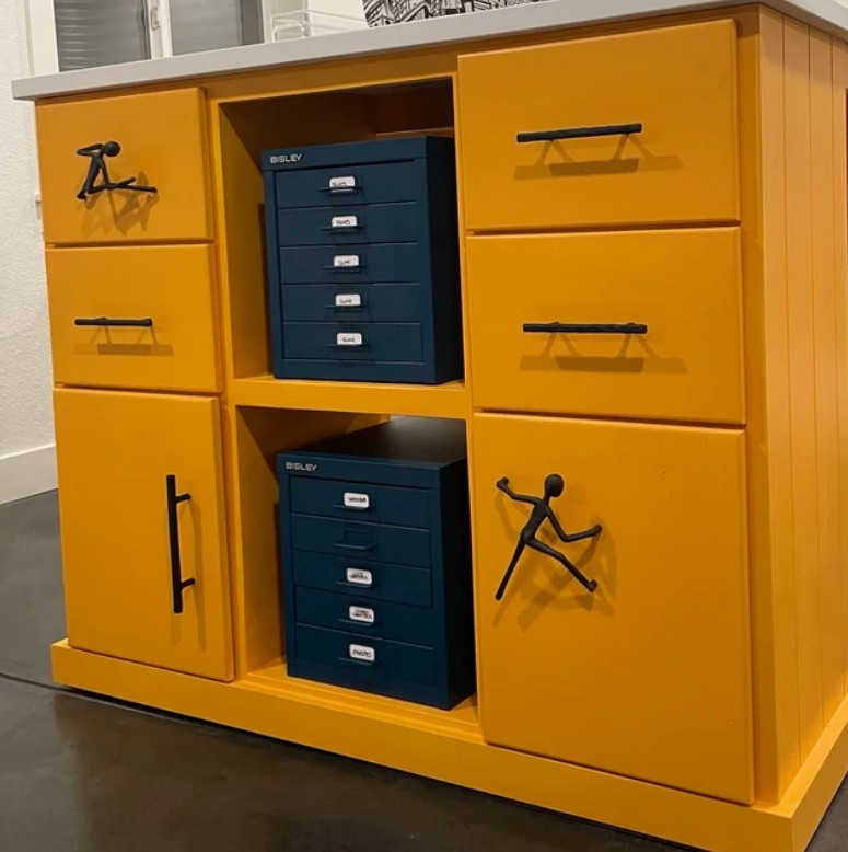 Attach Pulls: Thread the screw into the iron hardware and tighten them with a screwdriver, being careful not to over-tighten